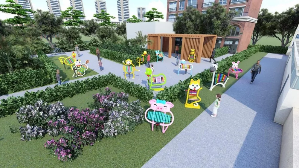 4. Udaraljke u stilu Mengxiaozhu mogu se instalirati u obiteljskom dvorištu, koje je ekskluzivni obiteljski glazbeni kutak, a može se koristiti i kao alat za rano obrazovanje djece.