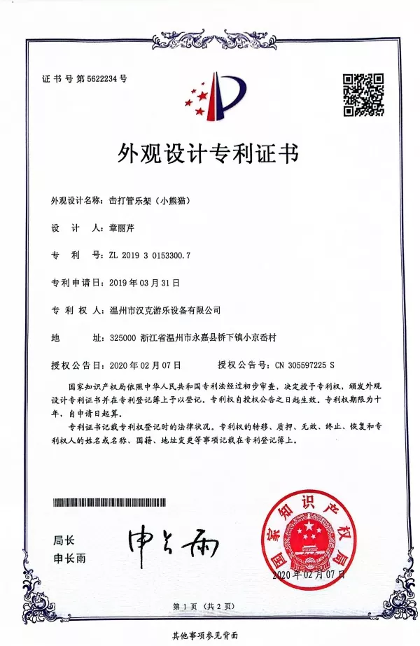 Kao Hankov najnoviji proizvod, udaraljke u obliku pande. Vrlo je pogodan za otvorene tematske parkove, vrtiće, osnovne škole, tematske restorane i druga mjesta zbog svog simpatičnog dizajna. Marimba, izrađena od jedanaest aluminijskih cijevi različitih boja, ima širok i živahan ton, što djeci olakšava doživljaj glazbene zabave