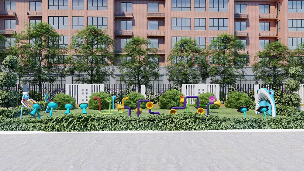 Na otvorenom Sonic Playground za govorne cijevi nudi jedinstveni spoj zabave, obrazovanja i senzorne stimulacije, što ga čini važnim obilježjem škola, zajednica i zabavnih parkova. Potičući komunikaciju i društvenu interakciju, ti govornici igraju ključnu ulogu u razvoju djece, stvarajući inkluzivno i obogaćujuće igračko okruženje. Ovaj scenski set za govorne cijevi ima višestruke kutove različitih visina, omogućujući djeci svih dobnih skupina i sposobnosti da razgovaraju i igraju zajedno, uživajući u čarobnom svijetu zvuka